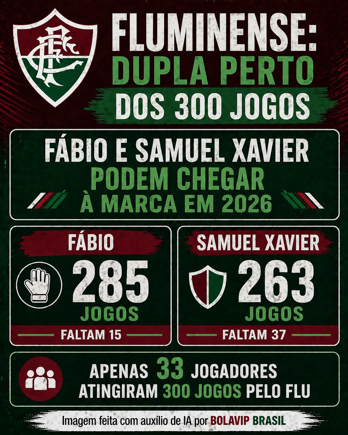 Como a temporada sequer chegou na metade, dois nomes do elenco do Fluzão podem entrar na lista seleta dos atletas com 300 jogos pelo Nense. Fábio e Samuel Xavier podem alcançar a marca ainda em 2026.