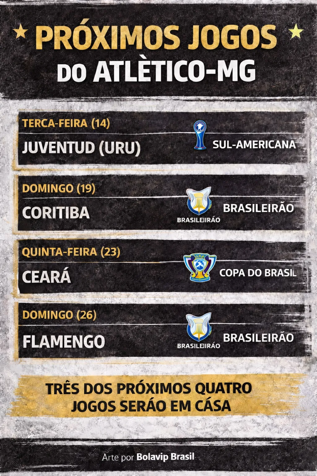 Atlético-MG fará três dos próximos quatro jogos em casa