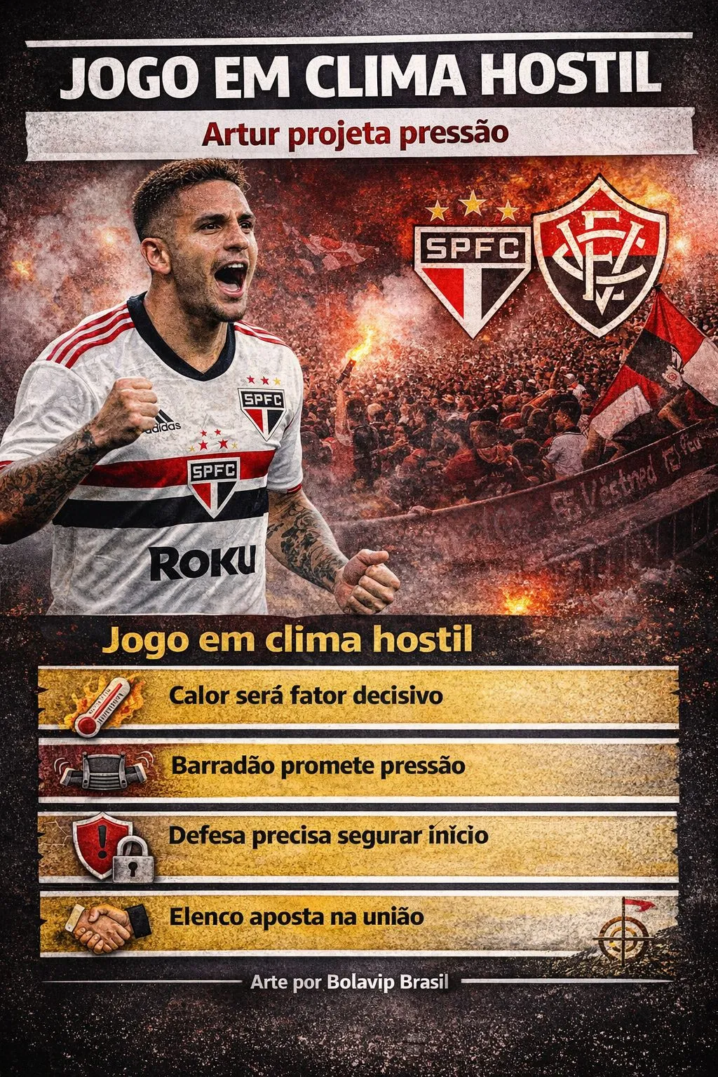 O São Paulo se prepara para mais um desafio importante no Campeonato Brasileiro, e o atacante Artur já antecipou o cenário que a equipe deve encontrar fora de casa. O jogador destacou as dificuldades da partida contra o Vitória e projetou um ambiente complicado em Salvador.