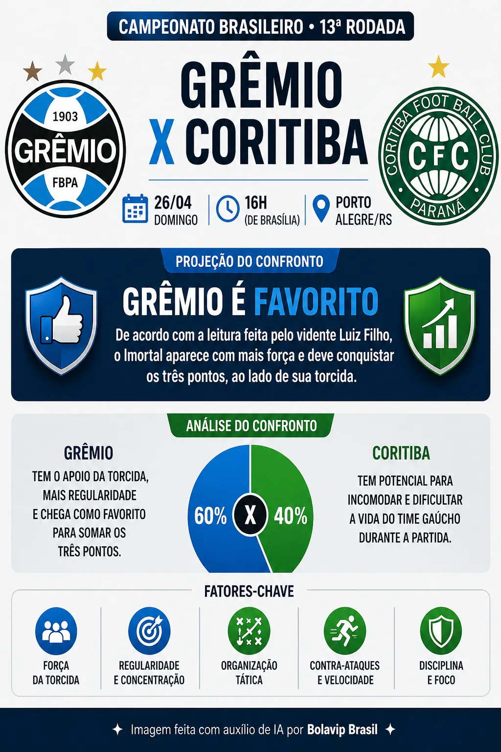 Vidente crava favorito em Grêmio x Coritiba e aponta leve vantagem do Tricolor Gaúcho